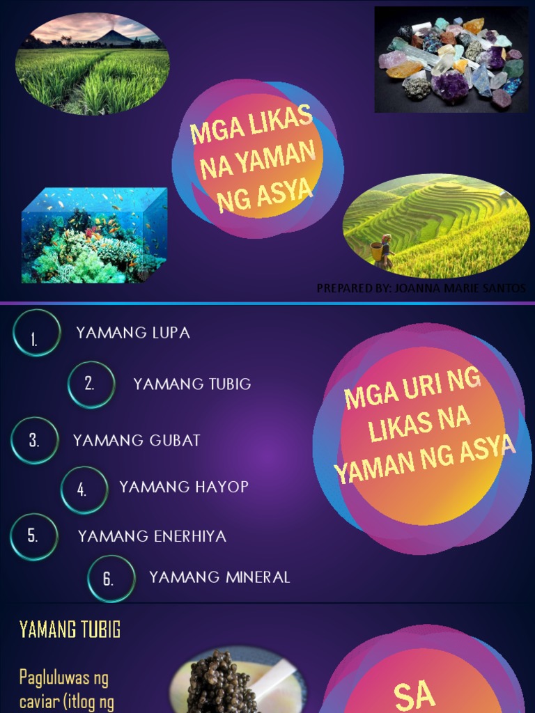 Mga likas na yaman ng asya ppt. Save Save MGA LIKAS NA YAMAN NG ASYApptx For Later. Isulat ito sa isang buong papel. Ang mga nabanggit na yamang likas ay hindi magiging kapaki- pakinabang kung hindi ito lilinangin at isasailalim sa prosesong nauukol sa paglikha ng mga produktong pang-industriya at pangkonsiyumer.